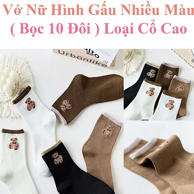 Vớ Nữ Hình Gấu Nhiều Màu ( Bọc 10 Đôi ) Loại Cổ Cao