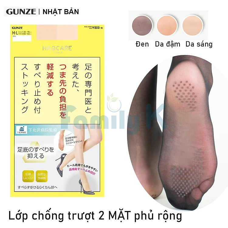 Vớ Quần tất chống trượt hai mặt của Gunze Nhật Bản sợi dai bền chống xước dọc mặc hàng ngày
