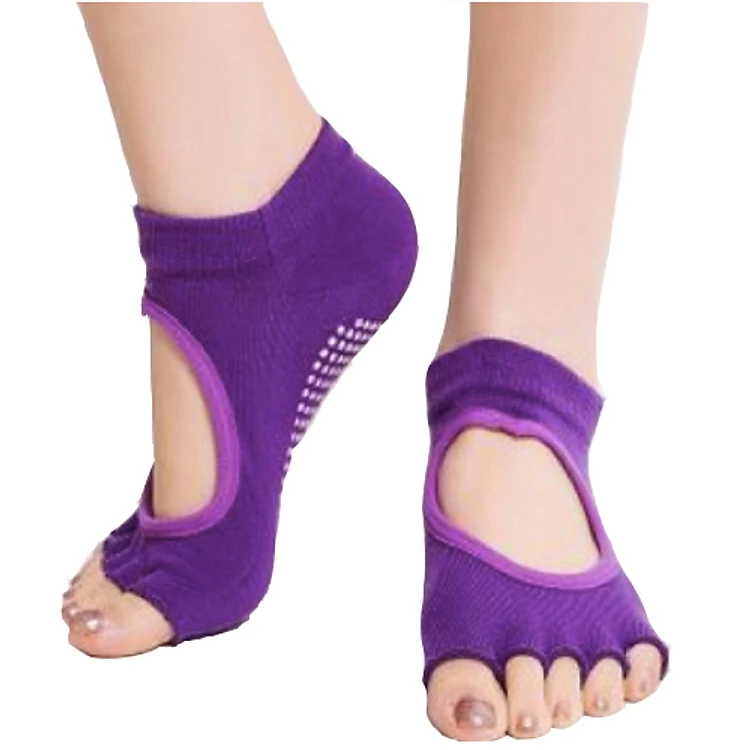 - Vớ tập yoga thiết kế dạng 5 ngón rời, đính các hạt nhựa dẻo dưới lòng bàn chân, vừa có tác dụng chống trượt, vừa giúp massage bàn chân thư giãn khi tập.