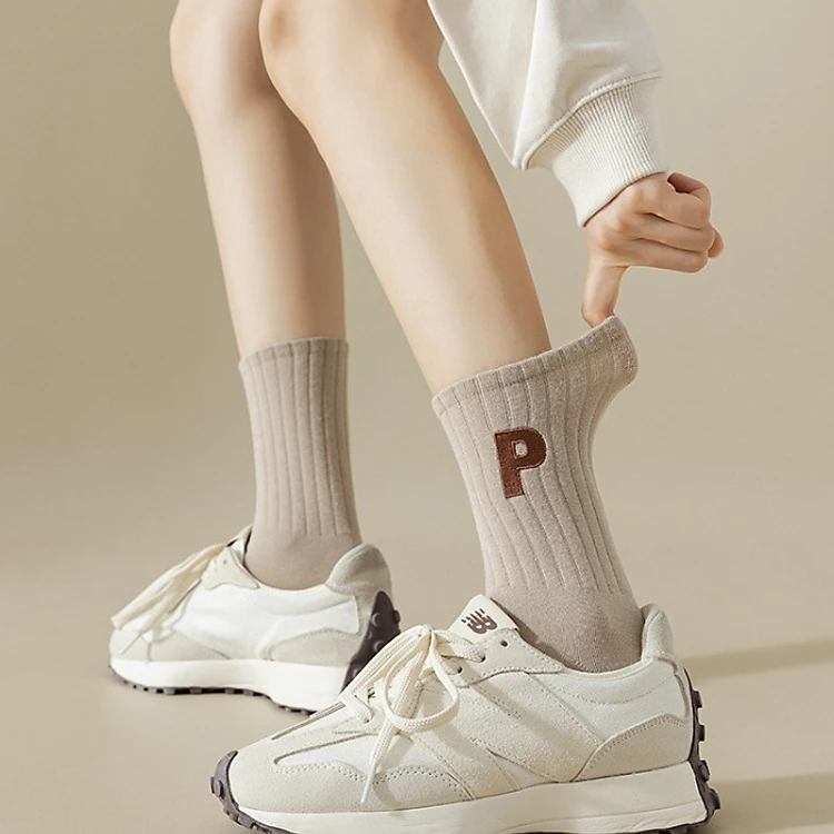 Vớ Thể Thao In Chữ P , Phong Cách Hàn Quốc Độc Đáo Thời Trang Thu Đông Mới Cho Nữ