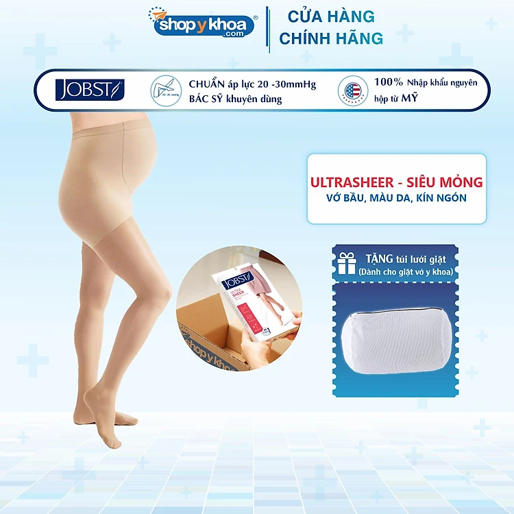 Vớ y khoa bầu JOBST UltraSheer - Siêu mỏng, màu da, kín ngón, 20-30mmHg, giãn tĩnh mạch chân (tất y khoa)