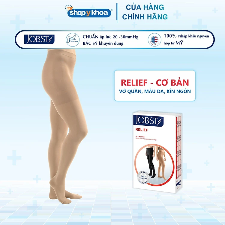 Vớ y khoa quần JOBST Relief - Cơ bản, màu da, kín ngón, 20-30mmHg, giãn tĩnh mạch chân (tất y khoa)