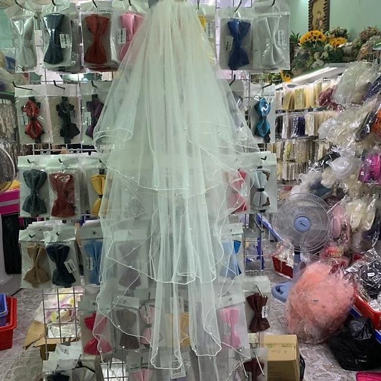 Voan đội đầu cô dâu dài 1,2m 4 lớp voan chấm hạt nhẹ