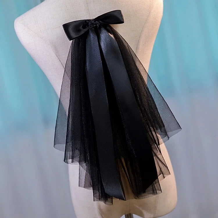 Voan (lúp) Cô dâu và Dạ hội, đi tiệc, sự kiện màu đen đính nơ ruy băng MS: 45533