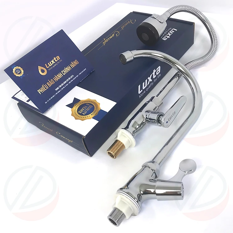 Vòi Bếp Vòi Rửa Chén Bát Lạnh Chính Hãng LUXTA Mạ Crome Sáng Bóng - Nhiều kiểu vòi, thân tròn, lò xo uốn dẻo,..
