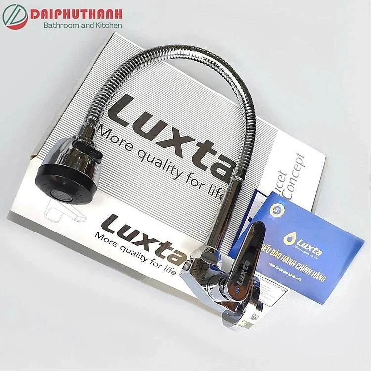Vòi Bếp Vòi Rửa Chén Bát Lạnh Gắn Tường Inox mạ Crome LUXTA L3106T3B - Vòi âm tường thân uốn dẻo, tăng áp 2 chế độ