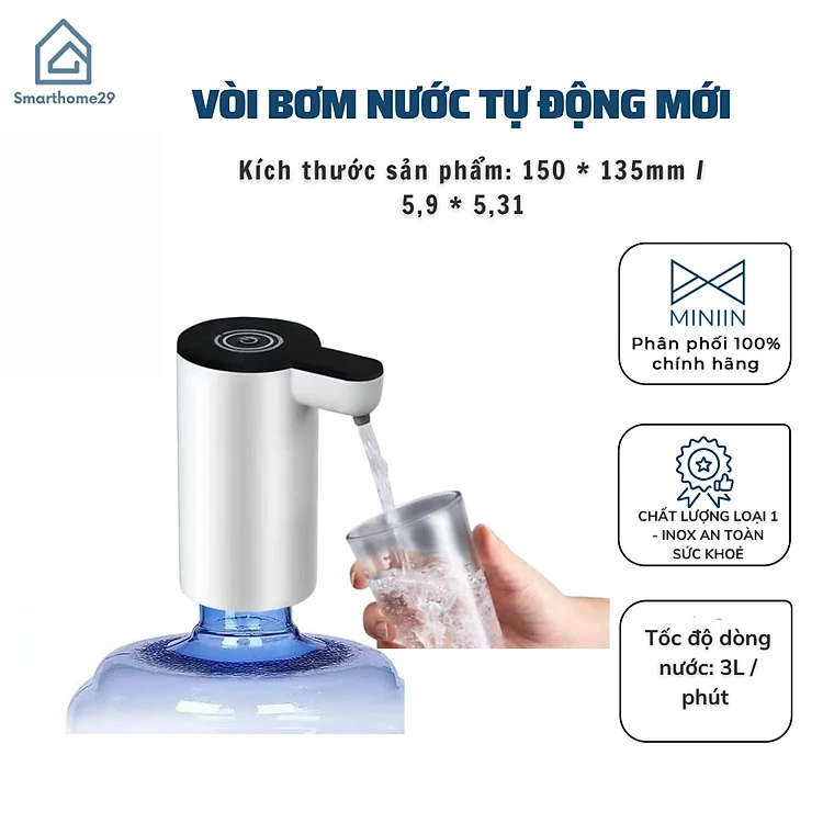 Vòi Bơm Nước Tự Động Đa Năng , Đầu Bơm Thông Minh Rót Nước Rảnh Tay Từ Binh Lọc - HÀNG CHÍNH HÃNG MINIIN