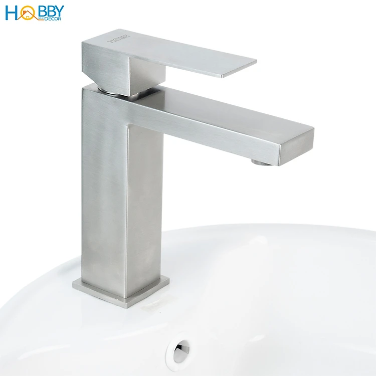 Vòi chậu lavabo rửa mặt nóng lạnh inox 304 mờ Hobby home decor VRM6