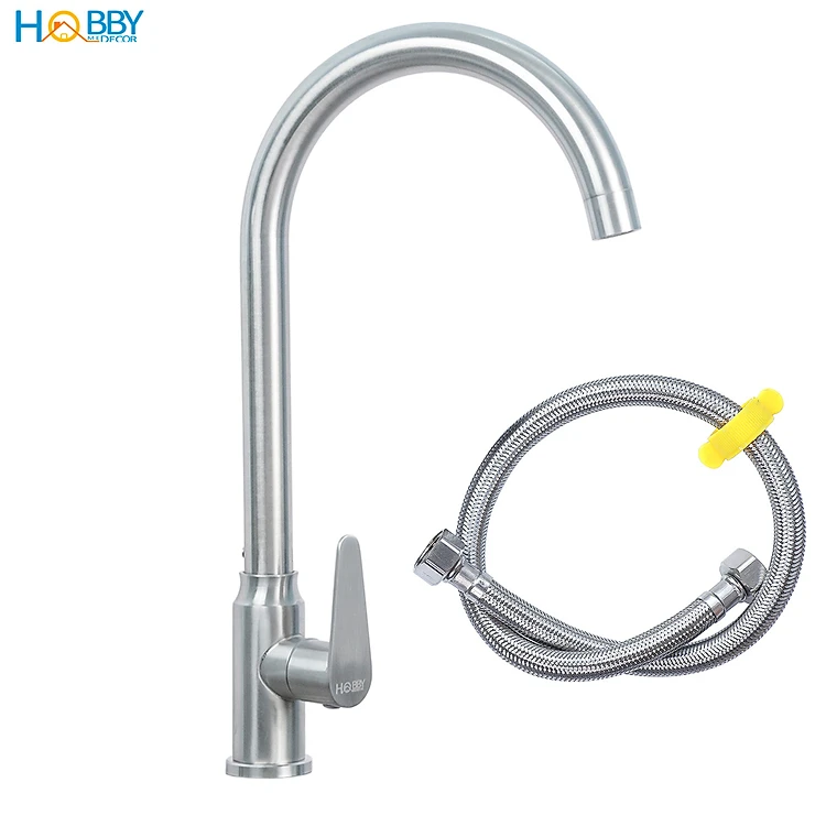 Vòi chậu rửa chén thân lạnh inox 304 kèm dây cấp Hobby home decor RL3