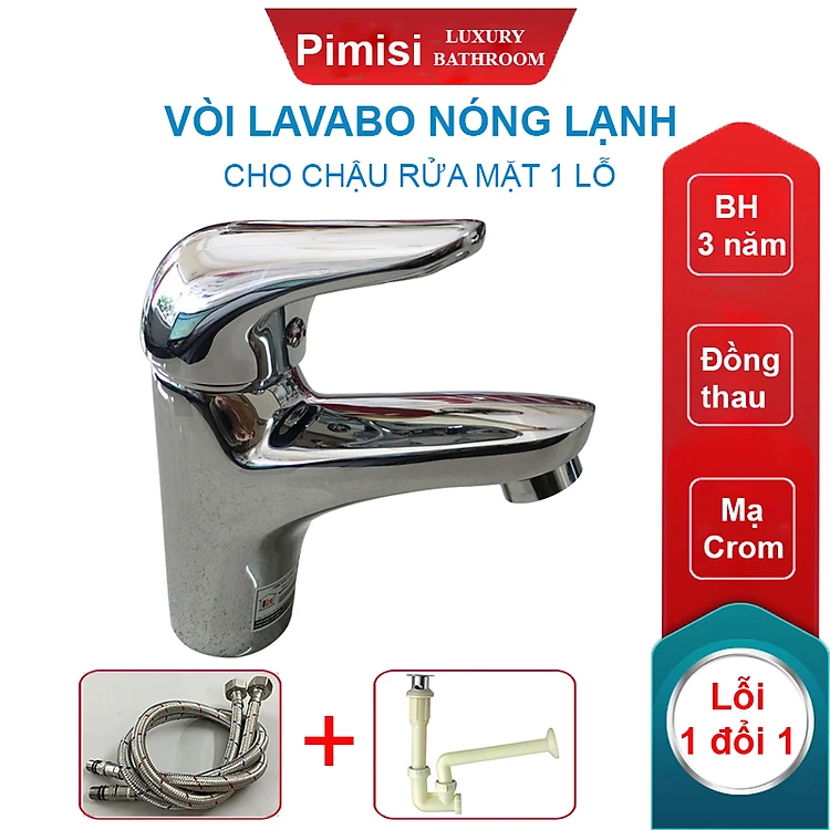 Chào Bạn, có phải Bạn đang muốn tìm hiểu vòi chậu rửa mặt nóng lạnh Pimisi PV-101C-1 cho chậu lavabo 1 lỗ với đầy đủ phụ kiện, hàng chính hãng Pimisi được làm từ chất liệu đồng thau, mạ Crom - Niken, điều chỉnh nước nóng lạnh bằng gật gù. Nhưng có thể đáp ứng đủ nhu cầu cơ bản cho không gian vệ sinh nhà bạn, với các thông số kỹ thuật, cũng như sự kết hợp hài hòa giữa các thiết bị vệ sinh đúng không ạ!