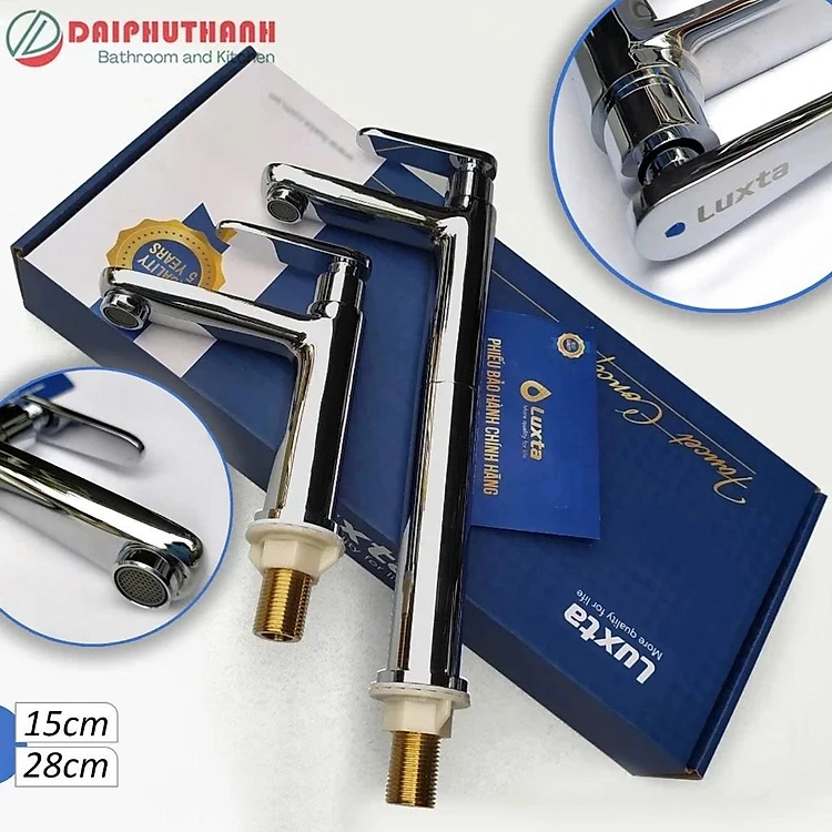 Vòi Lavabo Lạnh Đồng Thau Mạ Crome LUXTA L1105T3 Và L1105T3B - Vòi chậu rửa mặt thân tròn kiểu cao