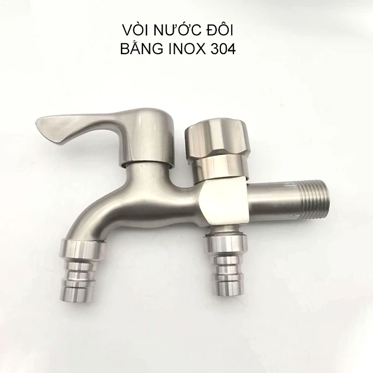 Vòi nước đôi bằng inox 304 gắn tường được thiết kế thông minh sáng tạo với 1 đầu vào 2 đầu ra giúp tiết kiệm không gian, rất gọn và tiện dụng. Với 02 đầu ra ta có thể gắn vòi xịt, vòi rửa, máy giặúp tiết kiệm không gian và rất hữu ích. Vòi được làm bằng Inox 304 không gỉ nên rất bền, an toàn. Van đóng mở được làm nhựa ABS rất bền