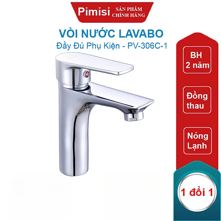 Vòi Nước Lavabo Pimisi PV-306C-1 Nóng Lạnh 1 Lỗ, Cho Chậu Rửa Mặt Treo Tường - Âm Bàn Đá Thuộc Nhà Vệ Sinh | Chính Hãng