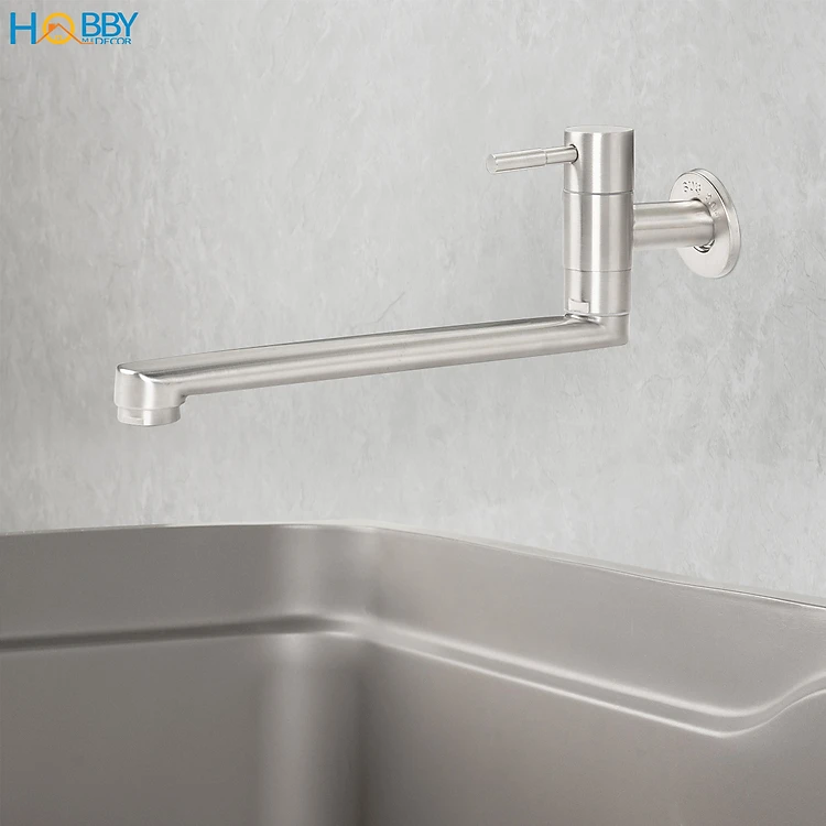 Vòi rửa chén gắn tường dòng lạnh inox 304 Hobby home decor VT4