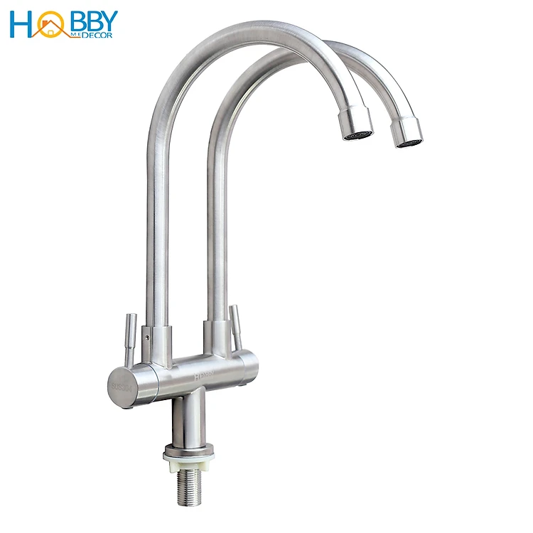 Vòi nước rửa chén 2 đầu lạnh inox 304 có dây cấp Hobby Home Decor RC2D