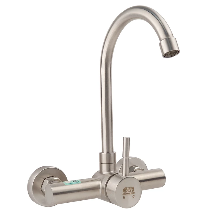 Vòi rửa chén nóng lạnh âm tường Inox SUS 304 Eurolife EL-T018AT (Trắng vàng)
