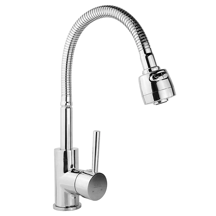 Vòi rửa chén nóng lạnh cần lò xo Đồng mạ Chrome Eurolife EL-KM03 (Trắng bạc)