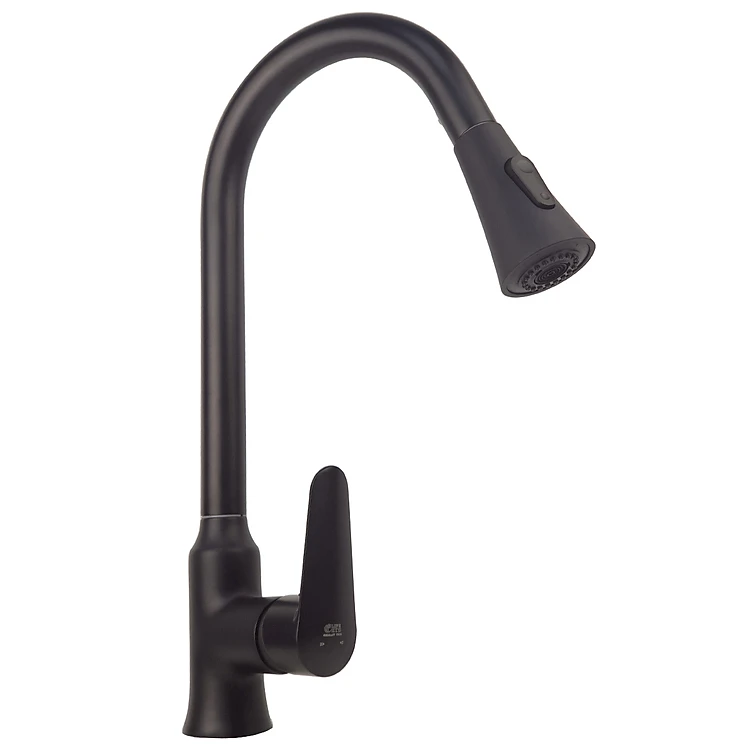 Vòi rửa chén nóng lạnh dây kéo Đồng mạ tĩnh nhiệt màu đen Eurolife EL-KM06 ( Đen)