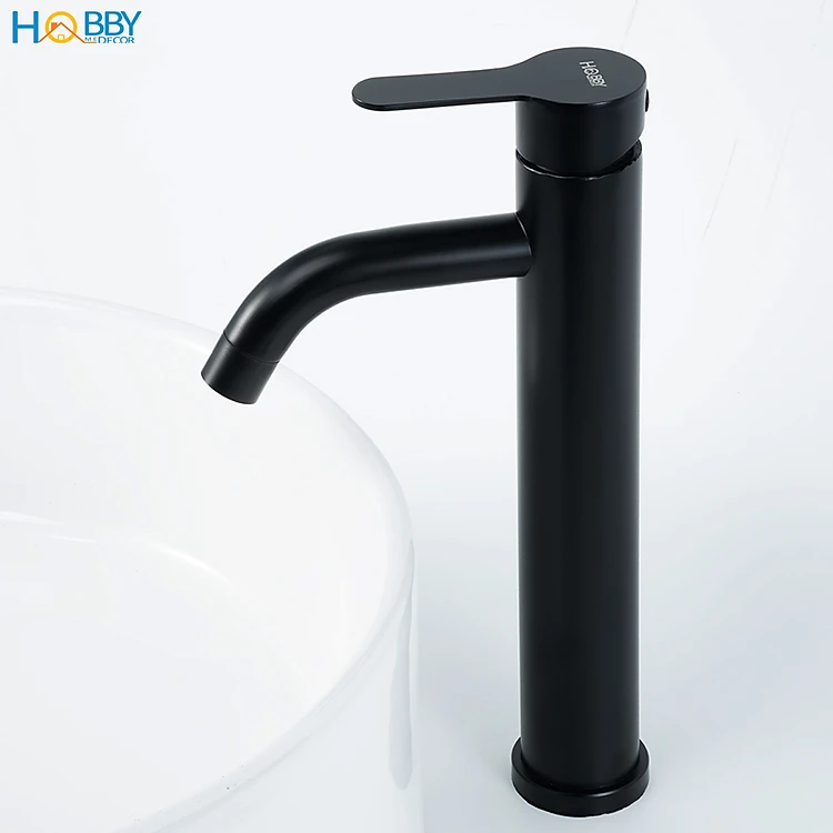 Vòi rửa mặt nóng lạnh mẫu cao inox 304 sơn đen Hobby home decor VRM8