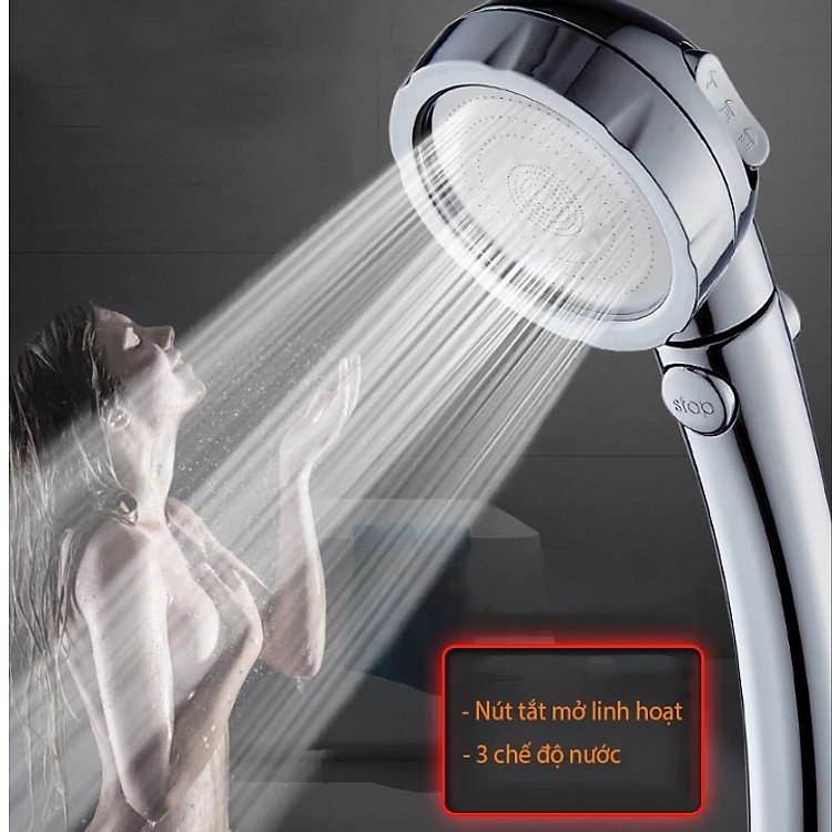 Vòi Sen Tăng áp Có Nút Khóa Nước 3 chế độ Phun, Xoay 360 độ Hàng Xịn - Vàng Gold 206783m