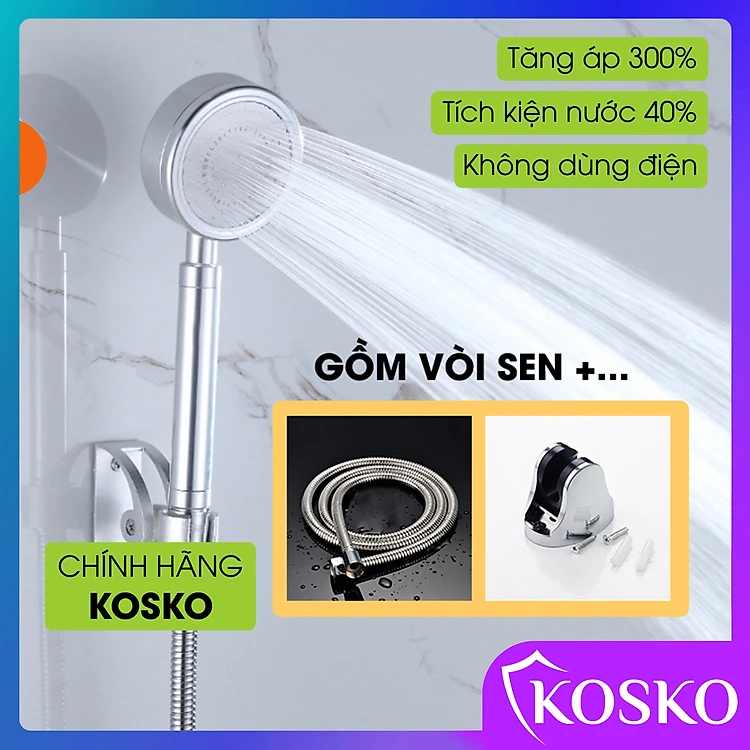 Vòi sen tăng áp Kosko không dùng điện, nhôm nguyên khối, công nghệ tia nước nano mềm dịu làn da