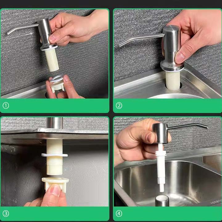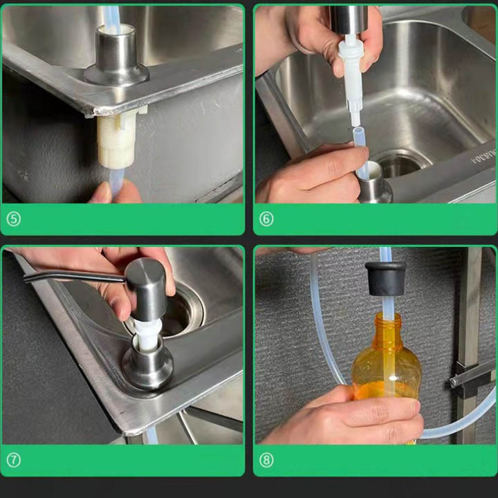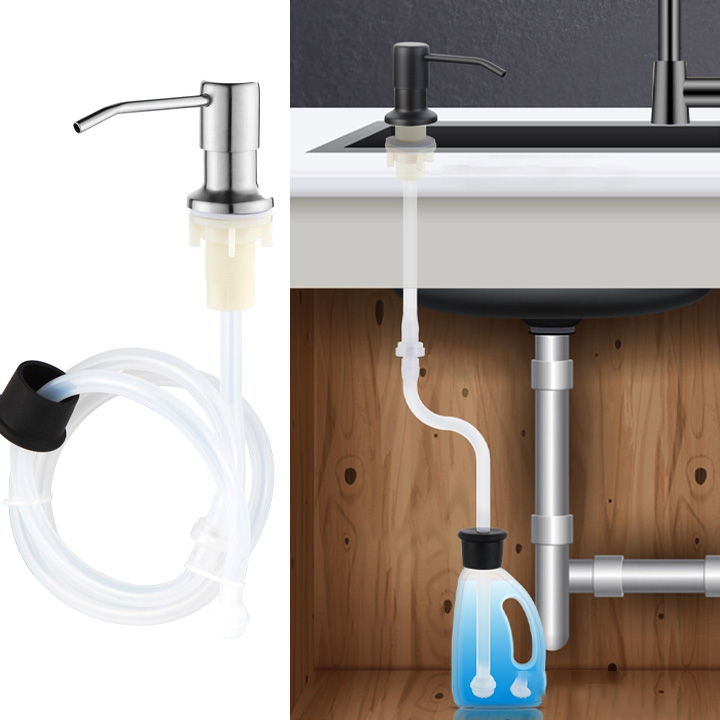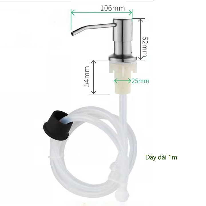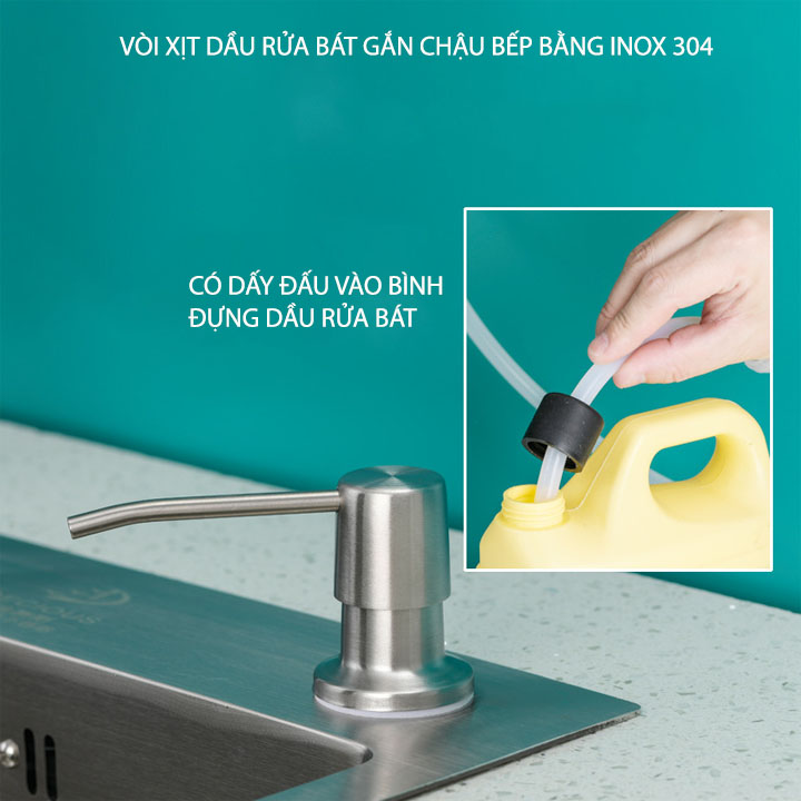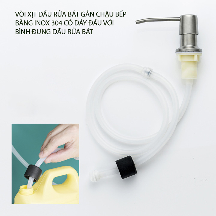 Đầu xịt dầu rửa chén bát gắn chậu bếp được thiết kế thông minh, sáng tạo có ống mềm nối với bình đựng dầu rửa chén bát giúp dễ dàng lấy dầu không cần phải mở nắp bình. Đầu bình làm bằng inox 304 và thân bằng nhựa ABS rất bền.