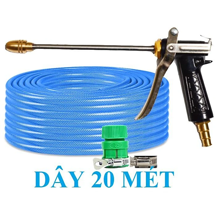Vòi Xịt Rửa Xe️ Bộ dây vòi xịt nước rửa xe, tưới cây , tăng áp 3 lần, loại 20m 206318 đầu đồng, đai, nối
