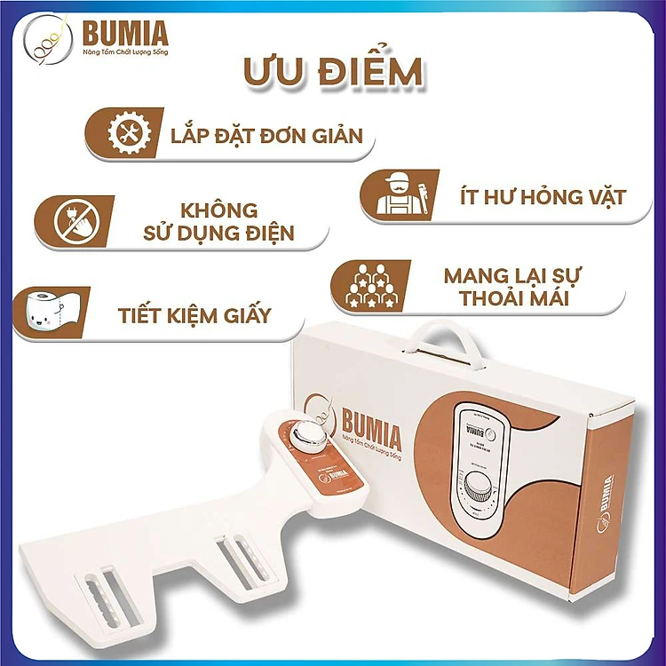 Vòi xịt vệ sinh thông minh gắn bồn cầu Bumia bidet bm02, bảo hành 36 tháng, lắp đặt vào các loại bồn cầu có sẵn tại nhà