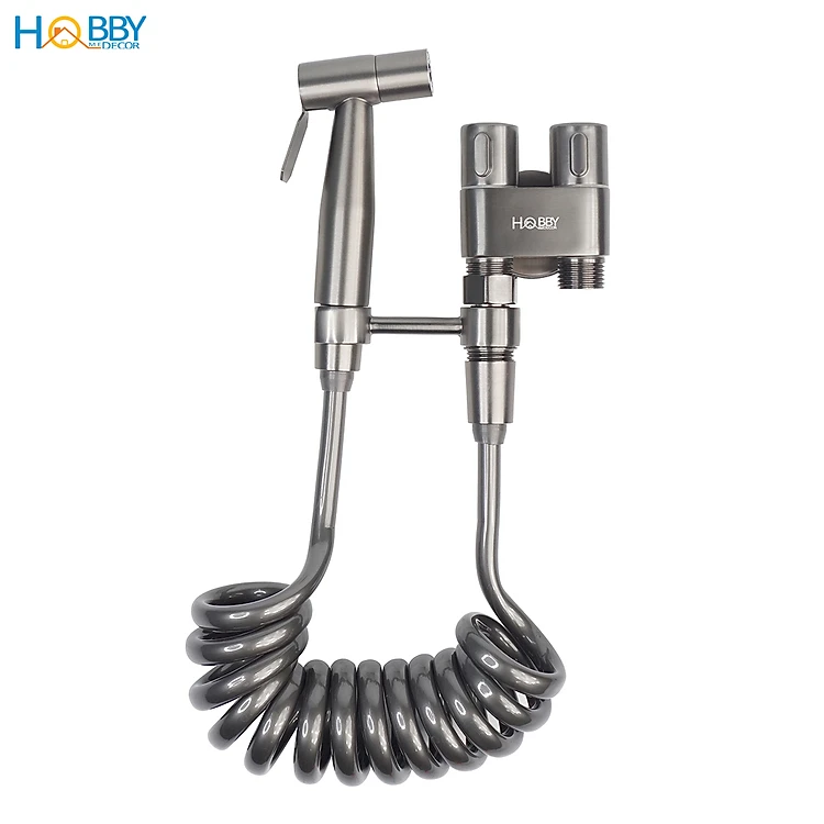 Vòi xịt vệ sinh toilet dây lò xo đa năng kèm van nước bồn cầu màu xám Hobby Home Decor VSR4F