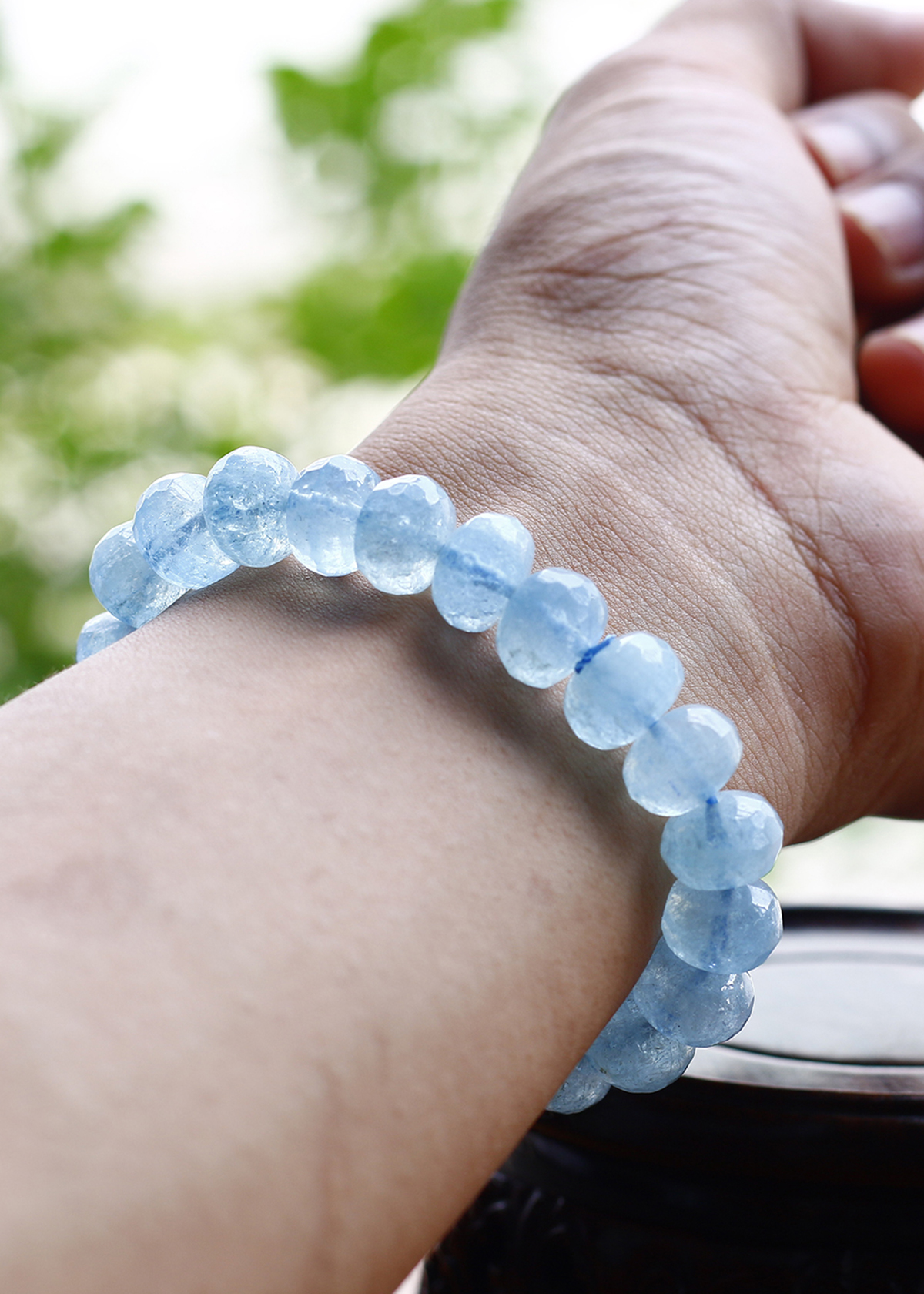 Vòng aquamarine bánh xe giác cạnh 12mm mệnh thủy, mộc - Ngọc Quý Gemstones