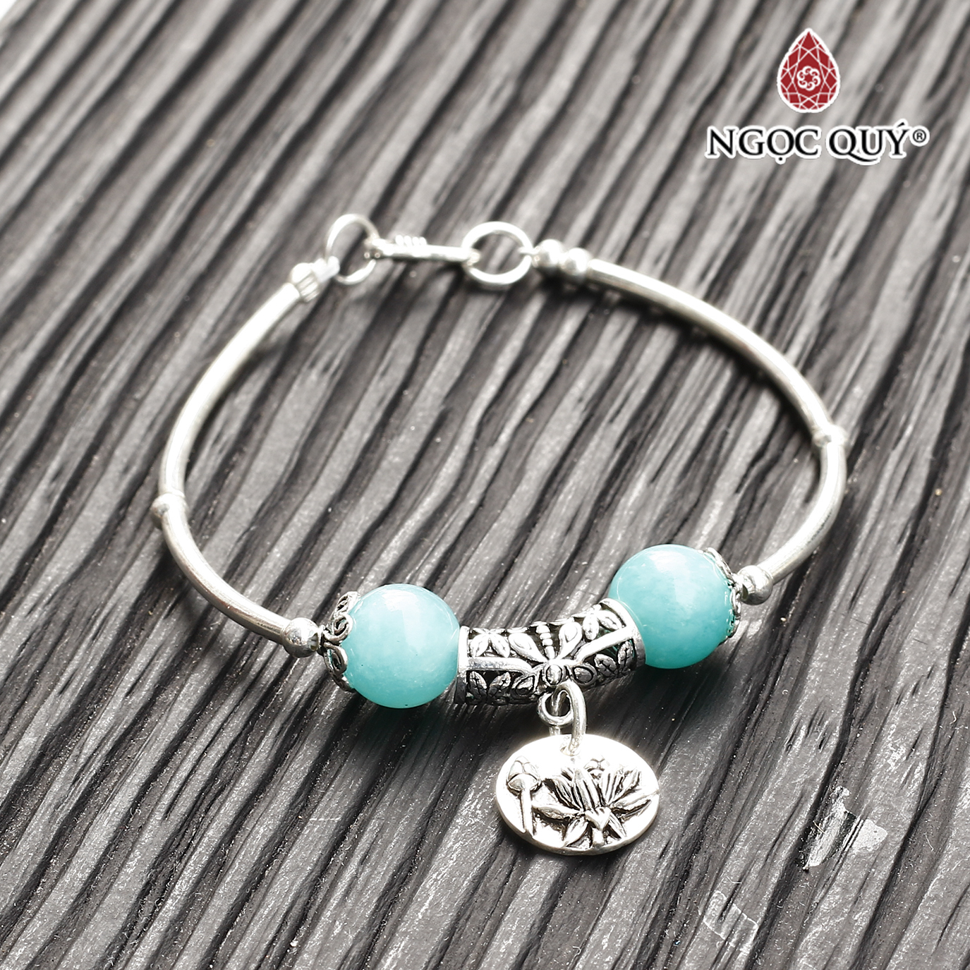 Vòng bạc phối đá thiên nhiên 8mm phối charm hoa sen bạc - Ngọc Quý Gemstones