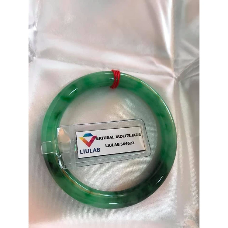 VÒNG CẨM THẠCH TỰ NHIÊN LÝ SƠN THỦY ĐẸP A SAO 48MM x DẦY 7MM ĐÃ KIỂM ĐỊNH KÈM GIẤY CHỨNG NHẬN LIULAB No 564622 MÀU XANH NGỌC ĐIỂM XANH ĐẬM 1 BÊN BÓNG ĐẸP NỮ 40KG-49KG ĐEO