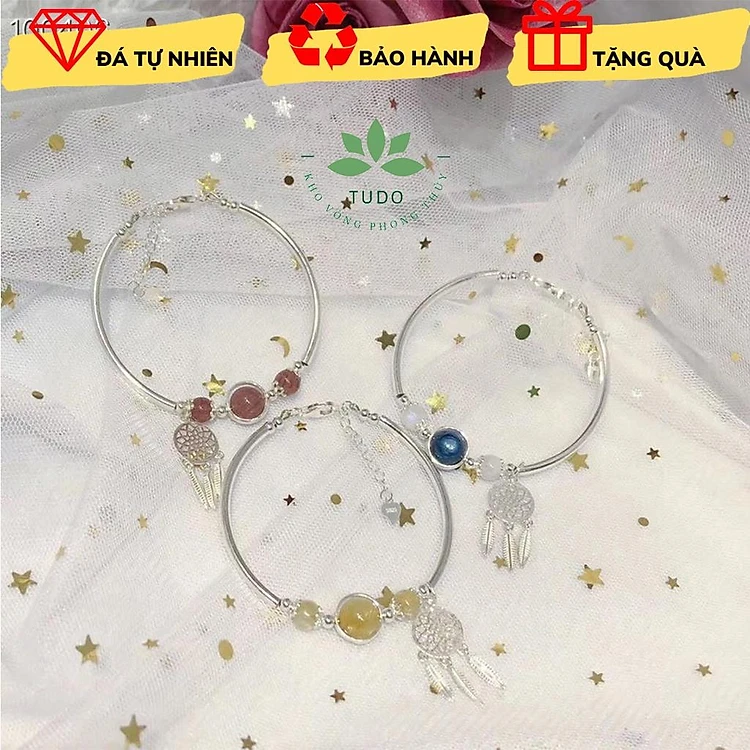 Vòng charm bạc mix đá phong thủy thiên nhiên TUDO260 có kiểm định - Vòng tay nữ cao cấp