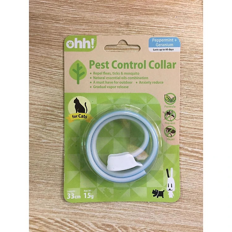 Vòng tránh rận Pest Control Collar for cat được sản xuất từ nhựa dẻo PVC không độc và tinh dầu hoàn toàn tự nhiên, có tác dụng xua đuổi các loại ve, rận kí sinh trên da và lông mèo. Đây là sản phẩm không thể thiếu khi thú cưng của bạn có sở thích dạo chơi ngoài trời.