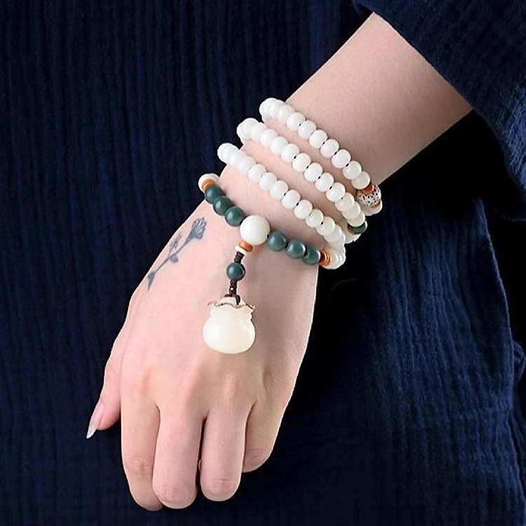 VÒNG CHUỖI 108 HẠT BẠCH NGỌC BỒ ĐỀ TỰ NHIÊN KHẮC TÚI TIỀN KÈM HỘP ĐỰNG
