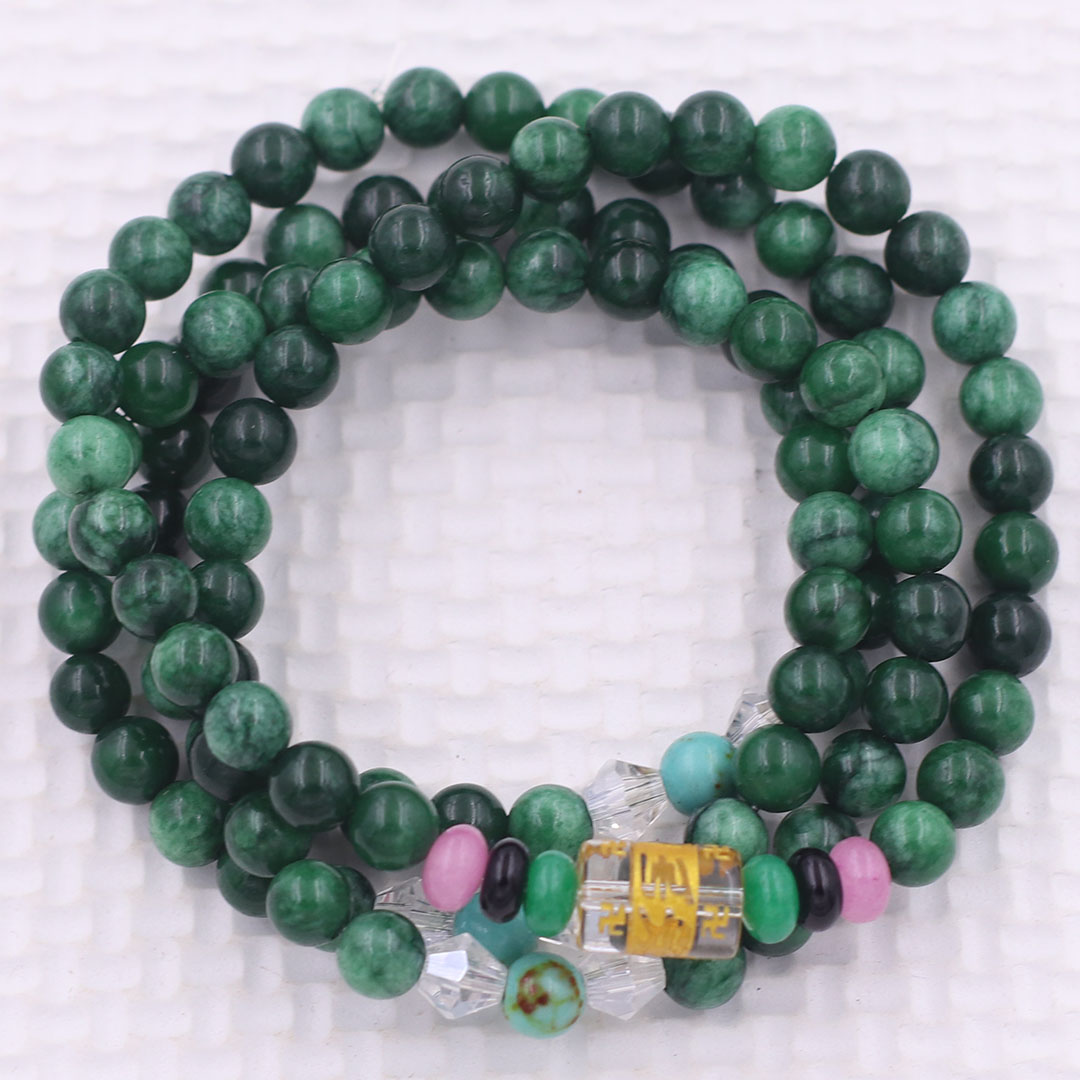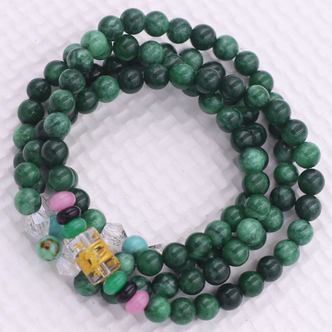 Vòng chuỗi 108 hạt đá cẩm thạch sơn thủy charm lục tự chân ngôn - hạt 8 ly ( size lớn ), vòng chuỗi niệm Phật, vòng chuỗi đeo tay