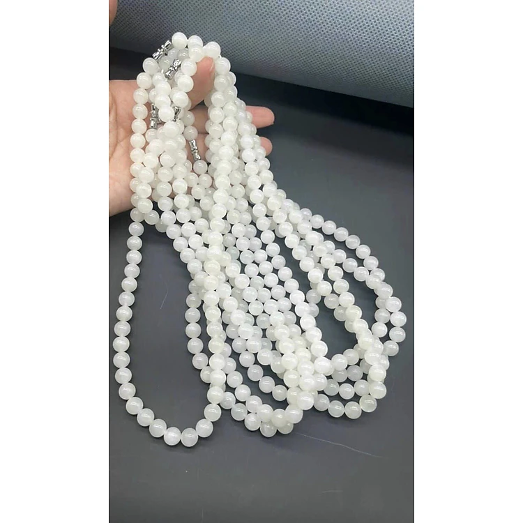 Vòng Chuỗi Đeo Cổ Đá Ngọc Hoà Điền Trắng Tự Nhiên bóng đẹp Size hạt 8mm hợp Các Chị mệnh Kim Thủy đeo hợp lên cổ tôn lên vẻ đẹp trẻ trung quý phái sang may mắn ạ