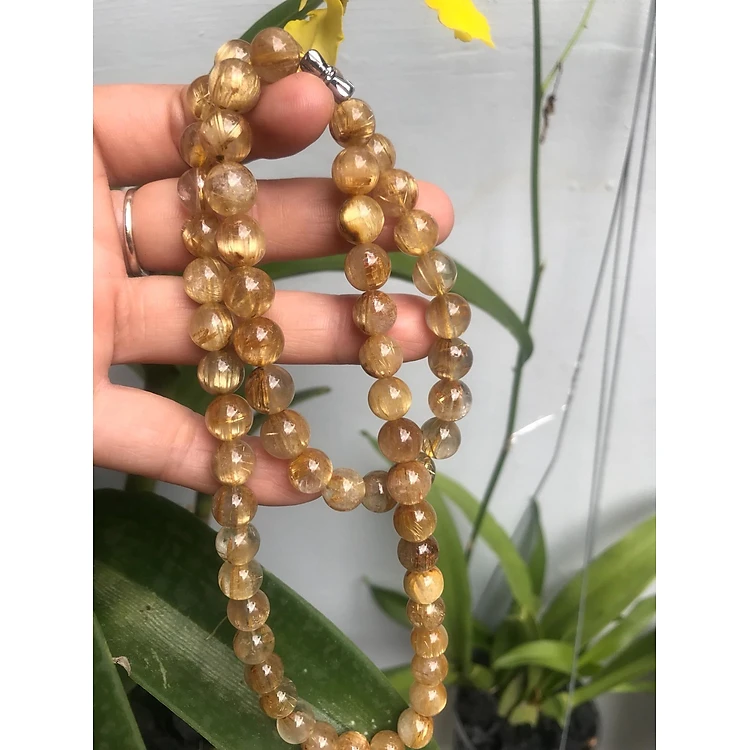 VÒNG CHUỖI ĐEO CỔ ĐÁ THẠCH ANH TÓC VÀNG ĐỒNG TRỤC VIP ĐẸP 9mm ĐÁ THIÊN NHIÊN RẤT SANG