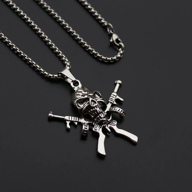 Vòng cổ dây chuyền nam đầu lâu súng