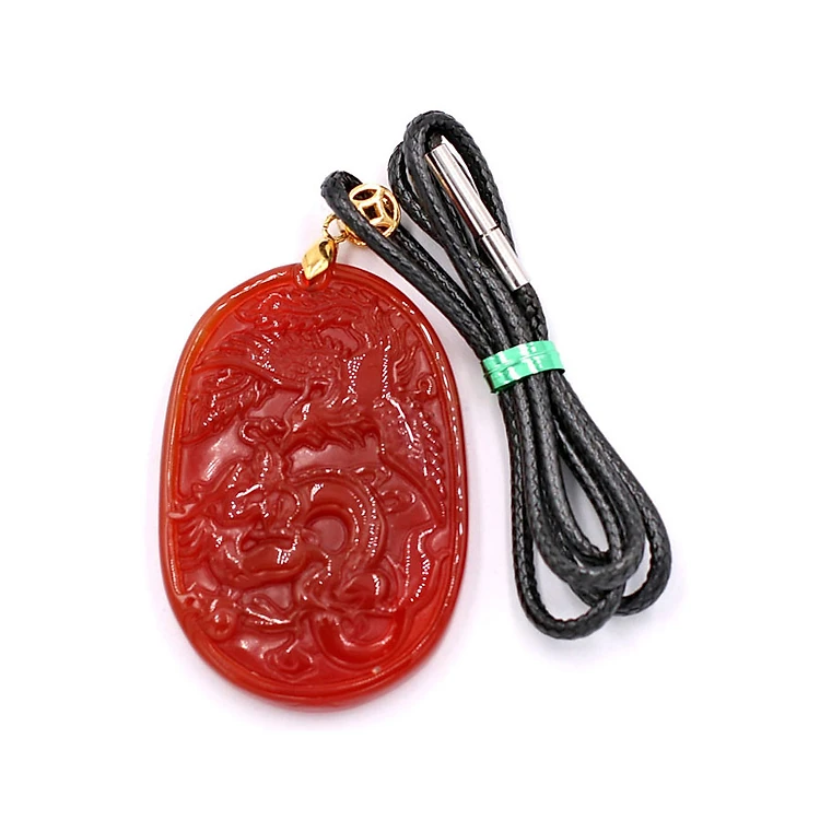 Vòng cổ Ngọc bội Long phụng mã não đỏ DELPMNO1 - Dây đeo đá phong thủy - Tượng trưng cho công danh, tài lộc, thịnh vượng