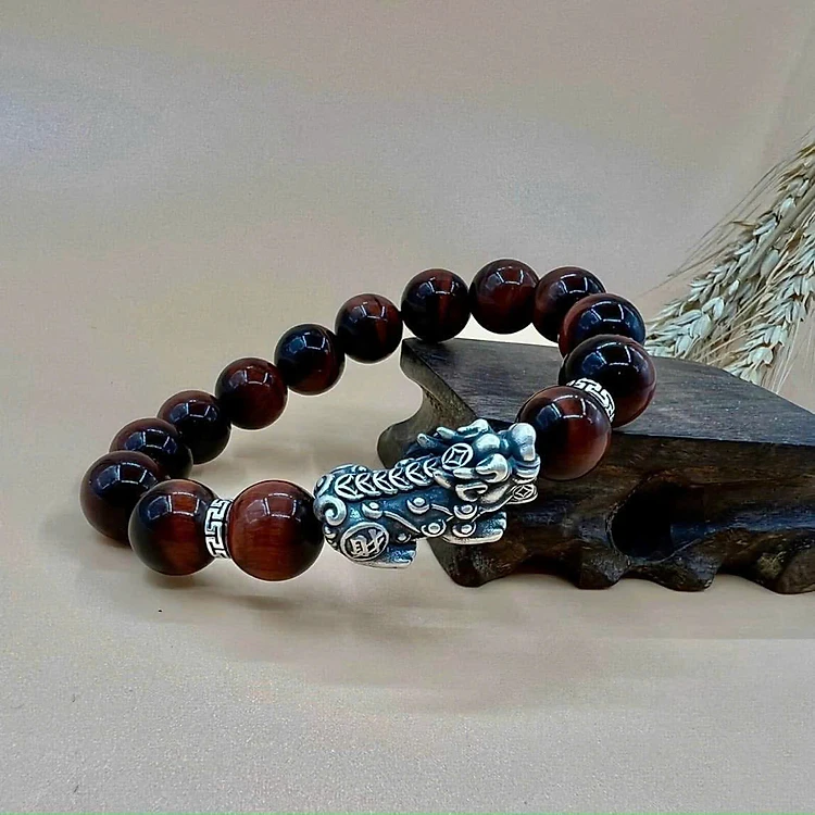 Vòng Đá Mắt Hổ Đỏ Nâu 12mm – Mix Tỳ Hưu Bạc – Phụ Kiện Thời Trang Đá Tự Nhiên Cao Cấp