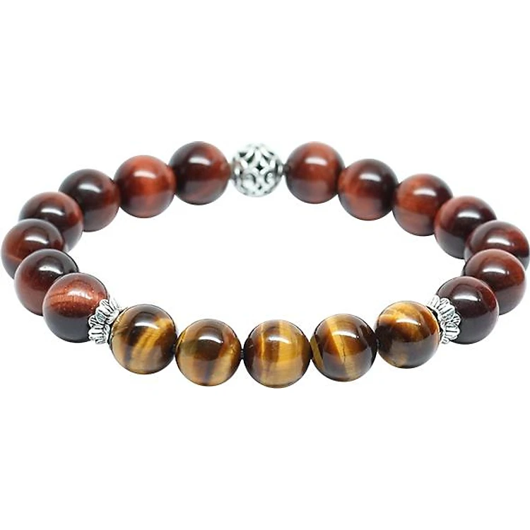 Vòng Đá Mắt Hổ Vàng Mâu Mix Nâu Đỏ + Charm Bạc Ngọc Quý Gemstones VT105