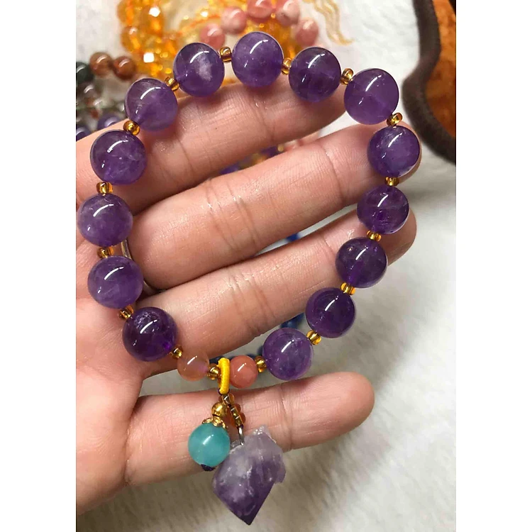 VÒNG ĐÁ THẠCH ANH TÍM KIỂU KẾT VỚI VIÊN ĐÁ THẠCH ANH TÍM ĐEO TAY XINH XẮN 10MM NỮ MỆNH HỎA THỔ