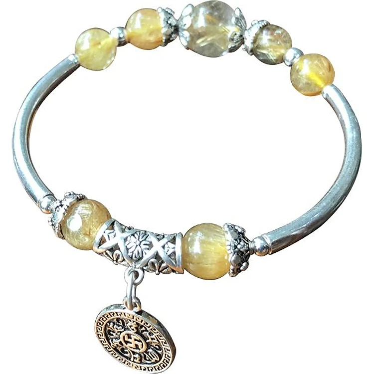 - Vòng Đá Thạch Anh Tóc Vàng Và Kiềng Bạc Ngọc Quý Gemstones TA036 có tác dụng mang đến may mắn, tài lộc, sung túc, thích hợp cho người làm ăn buôn bán.