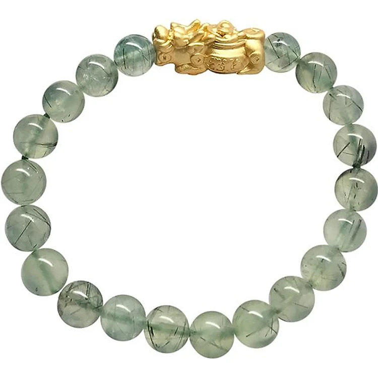 Vòng Đá Thạch Anh Xanh Mix Tỳ Hưu Mạ Vàng Ngọc Quý Gemstones TA039