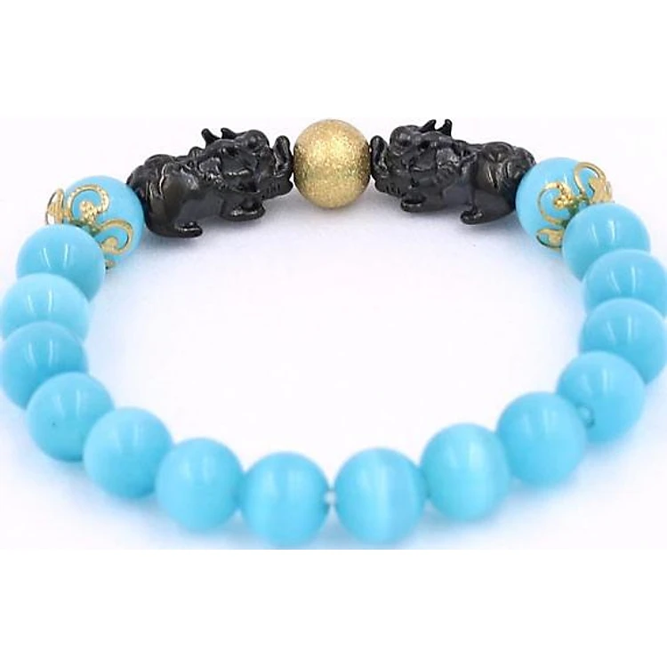 Vòng đeo tay Đá Mắt Mèo Xanh Da Trời size 8 ly, 10 ly, 12 ly - Vòng tay Tỳ Hưu Đôi inox đen VMMXBTHHEV8 - hợp mệnh Mộc, mệnh Thủy