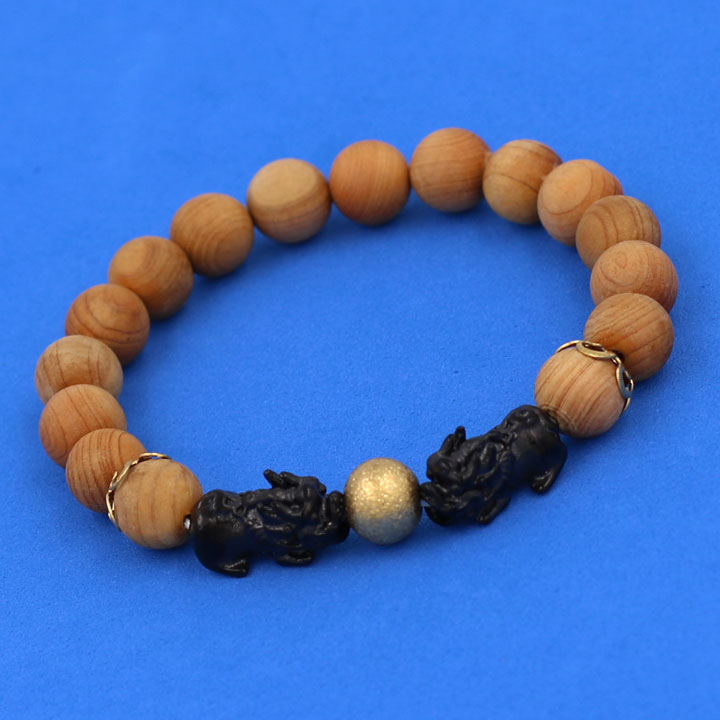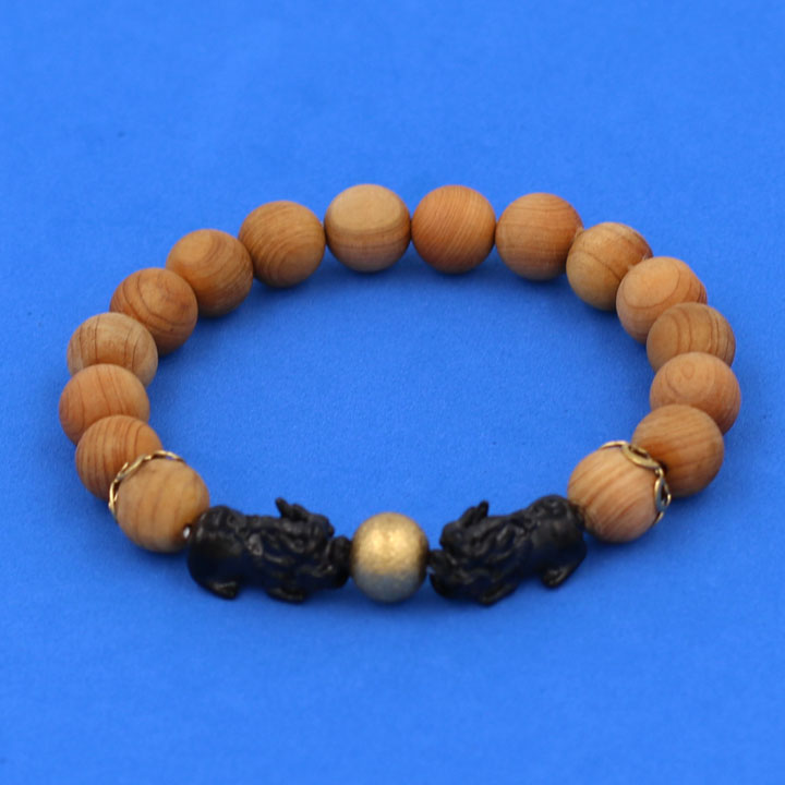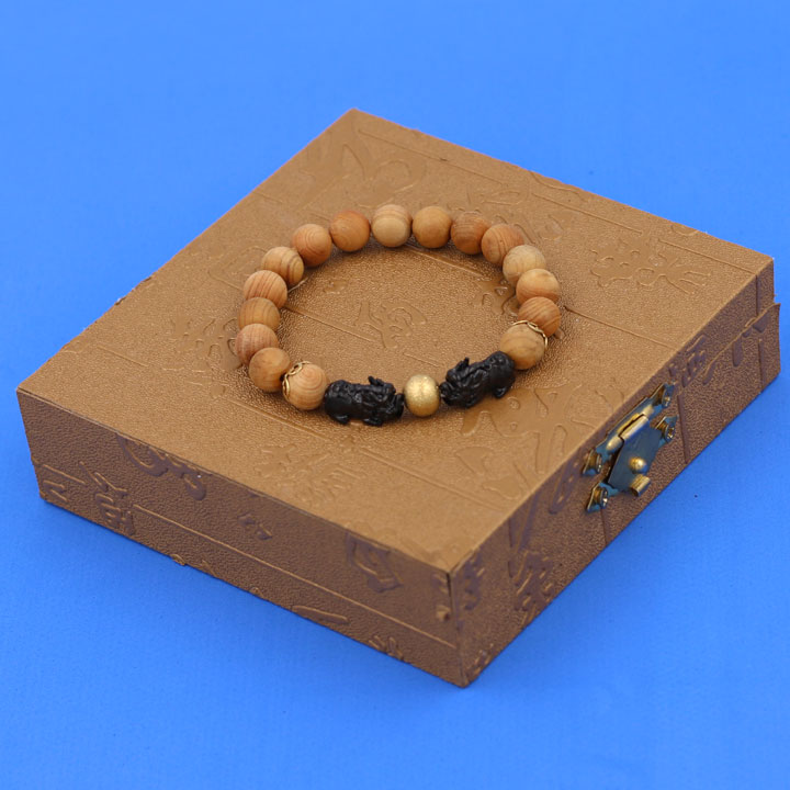 Vòng đeo tay Gỗ Ngọc Am - Vòng tay Tỳ Hưu Đôi inox đen VGNATHHEV