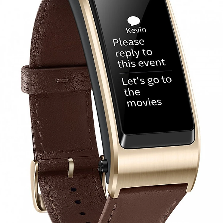 – Vòng đeo tay kiêm tai nghe bluetooth Huawei Talk Band B5 mang đến một thiết kế độc đáo, thông minh vừa là một vòng đeo tay theo dõi sức khỏe, vừa là một chiếc tai nghe bluetooth. Với một màn hình cong 2.5D sử dụng tấm nền AMOLED kích thước 1.13 inch.