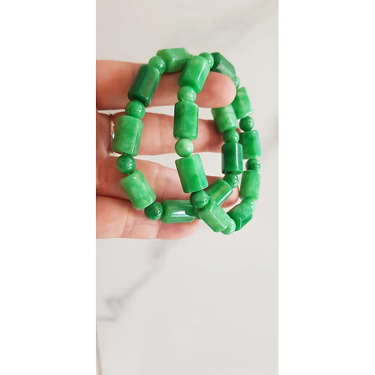 Vòng đeo tay nữ đá cẩm thạch xanh mix kiểu hạt ống vuông dài tròn size 10mm Nữ mệnh mộc hỏa thủy đeo xinh may mắn ạ