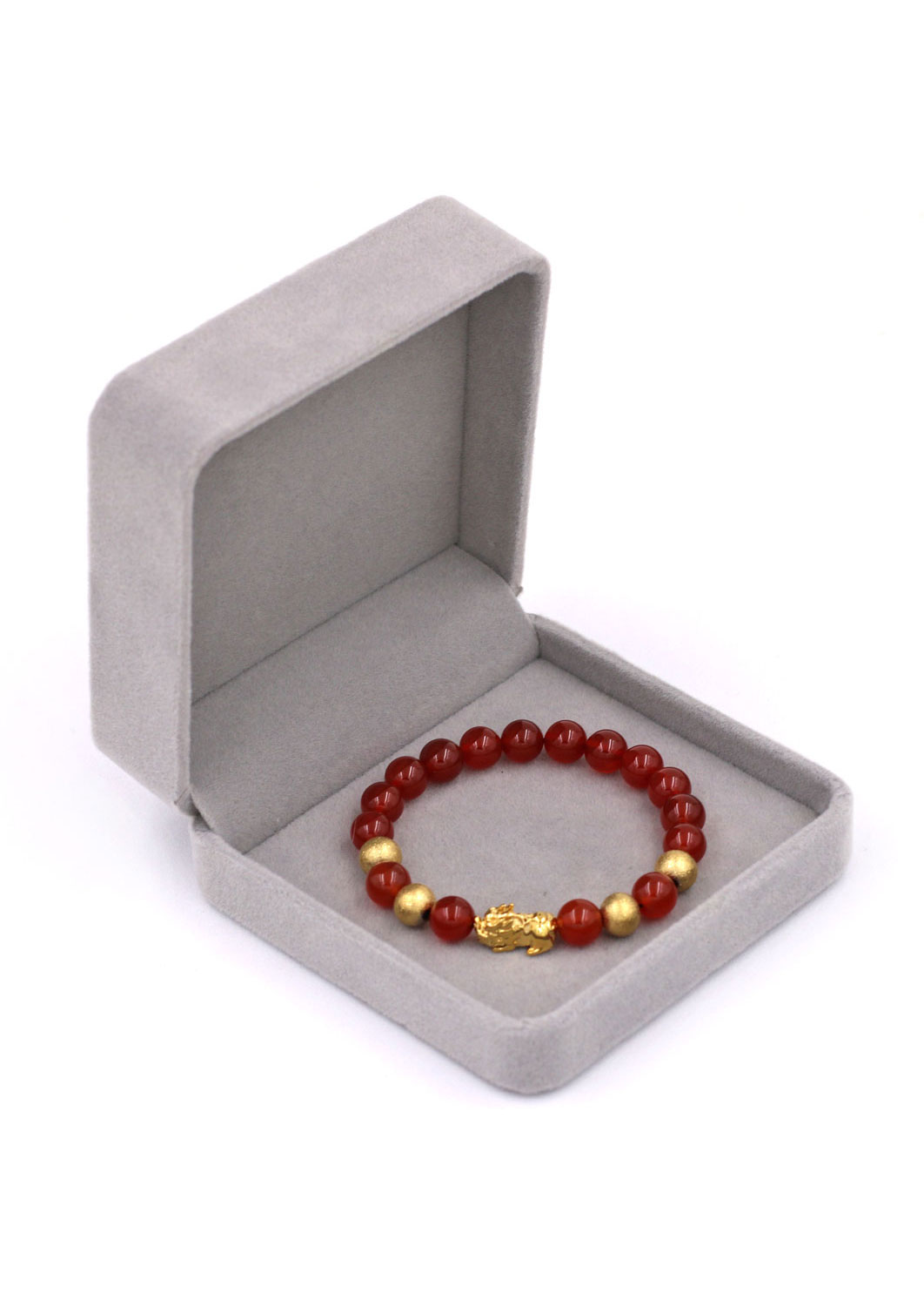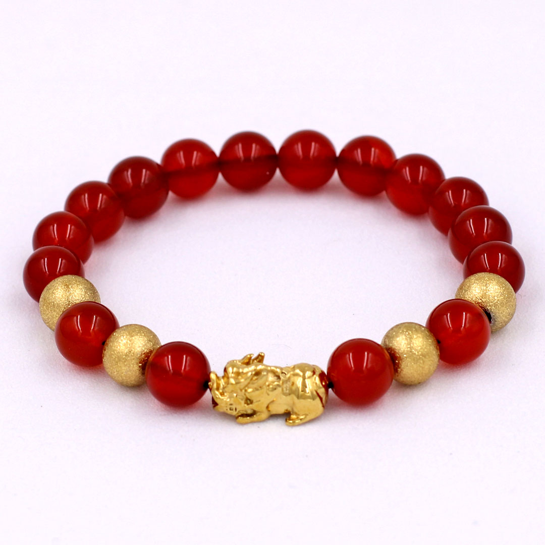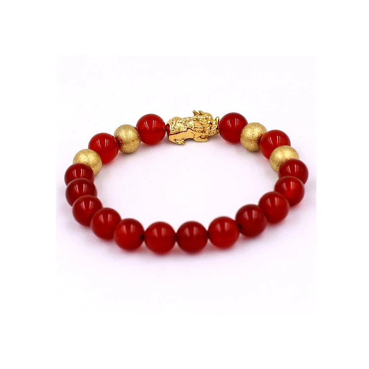 Vòng đeo tay Tỳ hưu inox vàng - Chuỗi mã não đỏ 8 ly VMNOTHVB8 - Vòng tay phong thủy